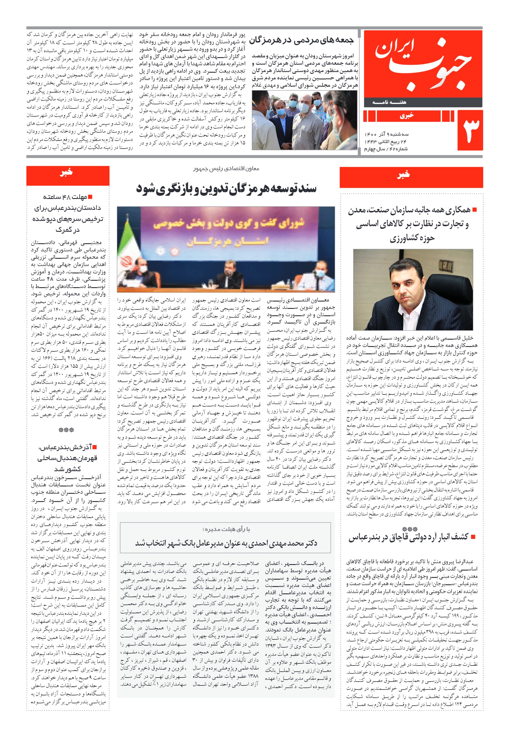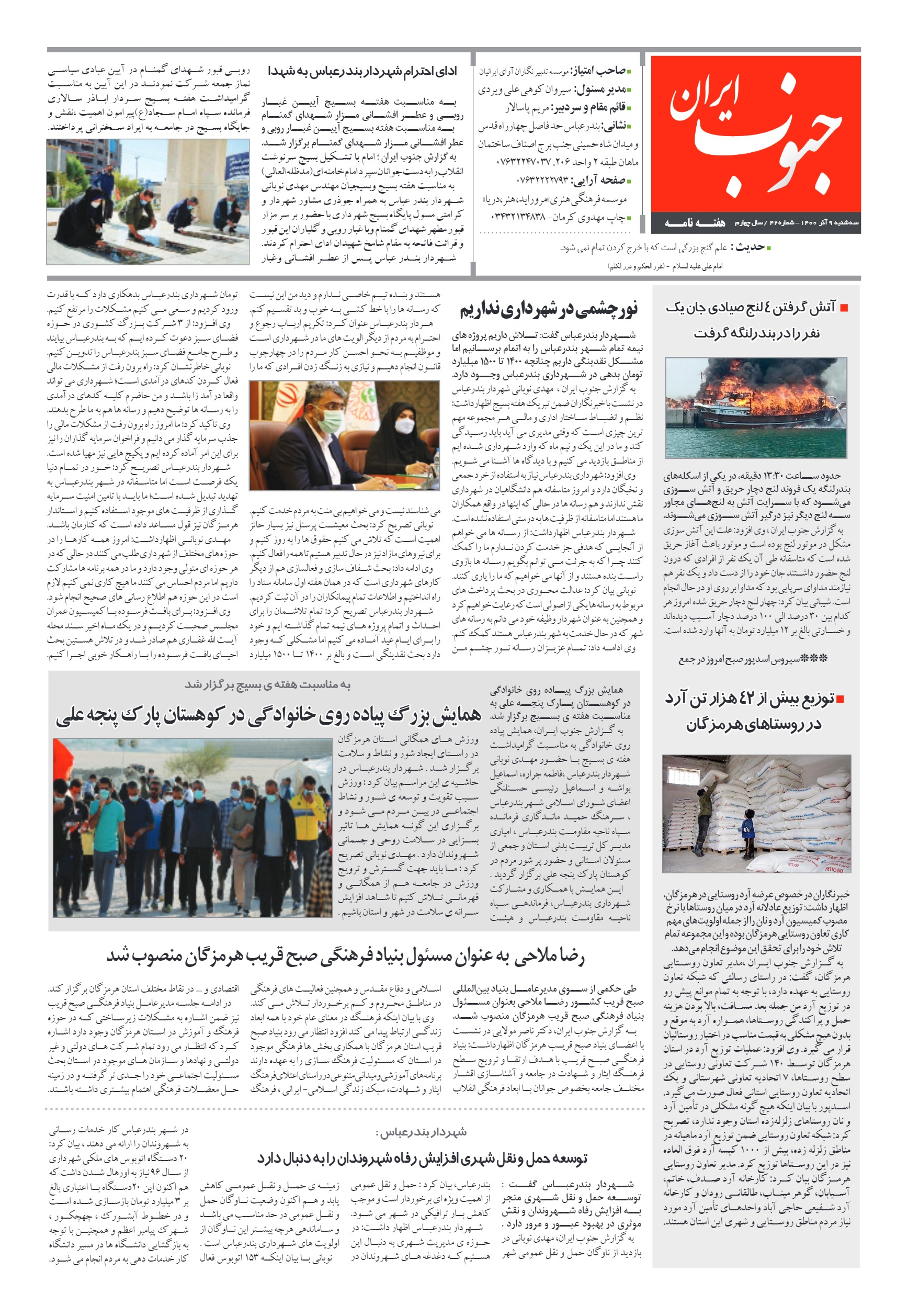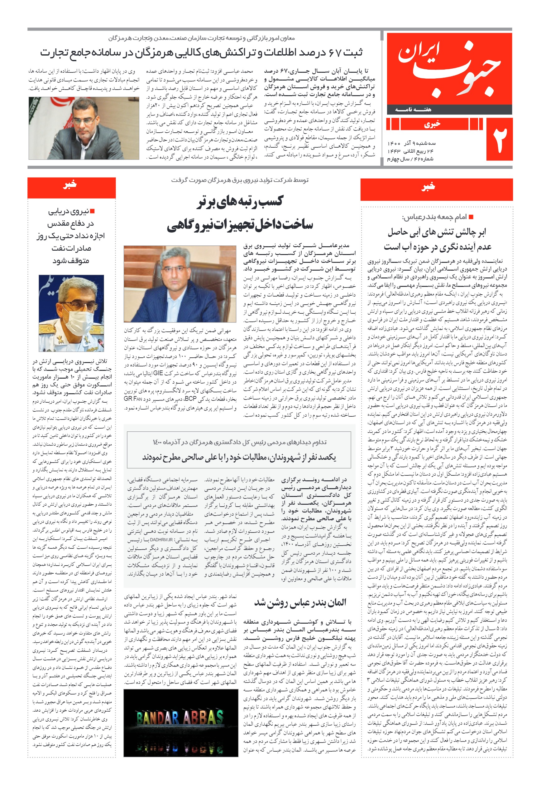 شماره ۱۱۹چهارشنبه ۷آذر ماه۱۴۰۲ -جنوب ایران